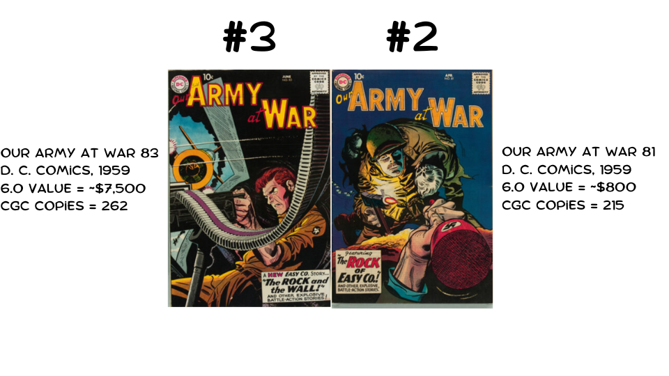 CGC census counts are influenced by value. A book like Amazing Fantasy #15 is worth far more than Our Army at War #81, so collectors are much more likely to have it graded. That could inflate its apparent supply relative to less valuable books.