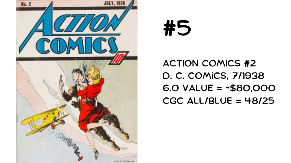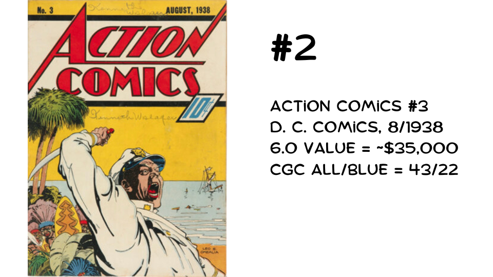 This may help explain why Action Comics #2 and #3—and Detective Comics #2 and #3 (not valuable enough to make this list)—are more difficult to find than their respective first issues.