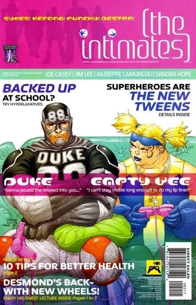 This one still feels like a fever dream—teen superheroes in a high school for metahumans, with info-dumps, media commentary, and pop culture snark running down the page borders. The Intimates wasn’t like anything else on the shelf.